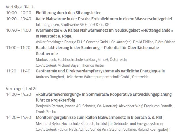 "Kollektorbasierte Nahwärmenetze - Praxisbeispiele" folgende Vorträge halten