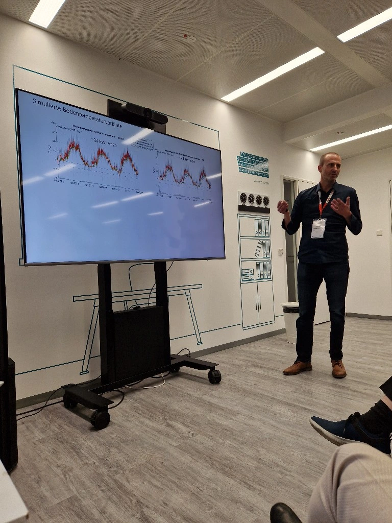 Im Mittelpunkt der Präsentation stand der Vergleich von Auslegungsempfehlungen nach VDI 4640 mit standortspezifischen numerischen Modellierungen. Die bisherigen Analysen zeigen, dass das in der VDI 4640 angenommene Wärmepotenzial des oberflächennahen Untergrunds bei Erdwärmekollektoren häufig deutlich unterschätzt wird.